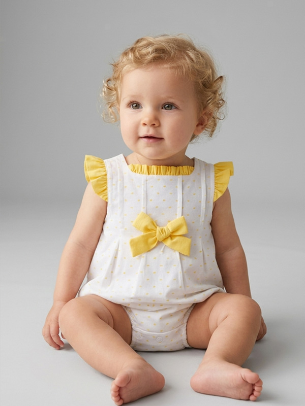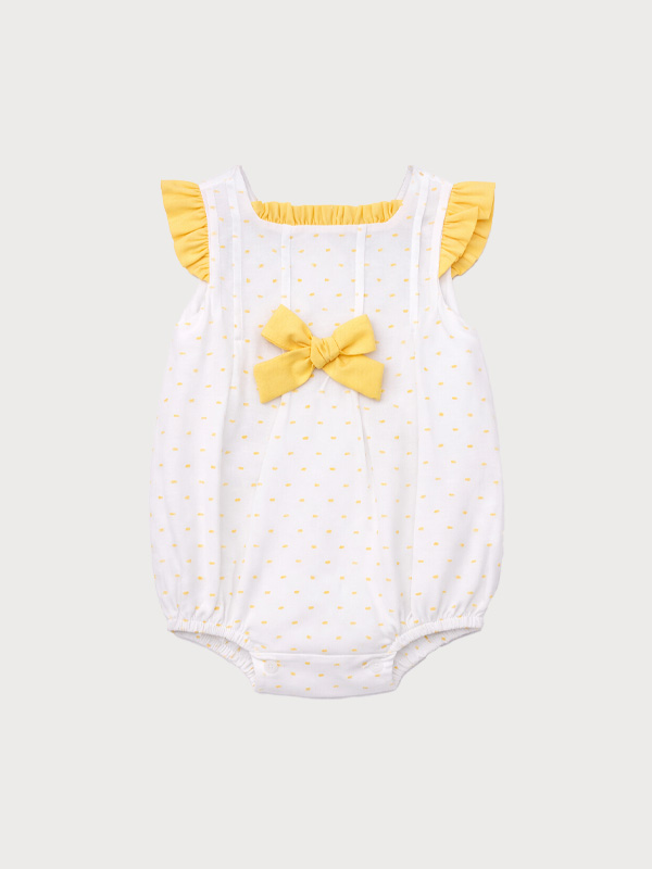 Ranita manga volante con lazo en pecho y goma en piernas. Ropa de bebé para eventos.